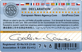 این کارت یک مدرک بین المللی و مورد تائید در تمام دنیا است و نام و مشخصات دارنده این کارت در وب سایت سازمان خبری اروپا با عکس و مشخصات و کد شناسی مخصوص درج می شود.