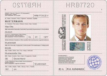این کارت یک مدرک بین المللی و مورد تائید در تمام دنیا است و نام و مشخصات دارنده این کارت در وب سایت سازمان خبری اروپا با عکس و مشخصات و کد شناسی مخصوص درج می شود.